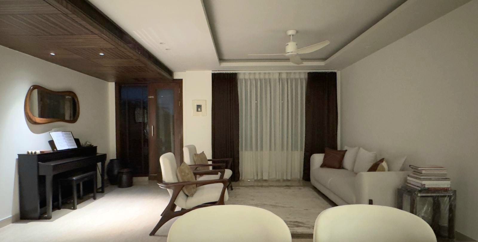 For this exclusive residence in Vasant Vihar, the design brief was clear: create a space that feels grounded, intentional, and secondary to the quiet luxury of an earthy, minimalist interior.